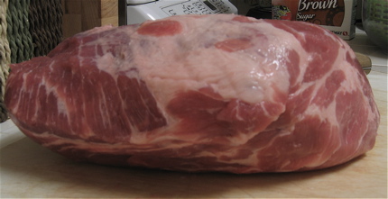 I didn’t waste any time getting started on my sausage making endeavor: I placed an order with my butcher for 5 lbs of pastured pork shoulder (also called boston butt or picnic shoulder), which I would make into homemade sausage treats for my birthday BBQ this past weekend (yeah, I stretch my birthday celebration out for at least 2-3 weeks).