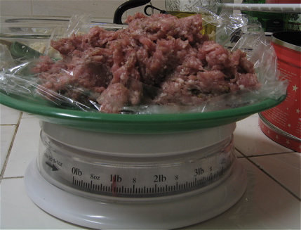 makes 5 lbs5 lbs boneless pork shoulder, chilled (or 5 lbs finely ground pork butt/shoulder)