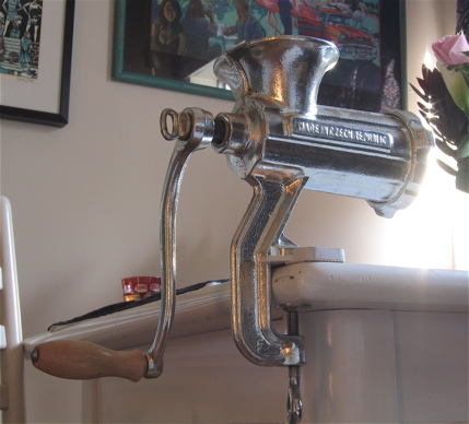 So my birthday came and went — it was a fantastic day — we slept in, had a good breakfast of eggs, biscuits, and padrones peppers, took a long beautiful drive out to the ocean, stopped at a goat farm for super fresh goat cheese, climbed the rocks and listened to the surf at the beach … and of course, I received my wonderful BIRTHDAY MEAT GRINDER from Steven.